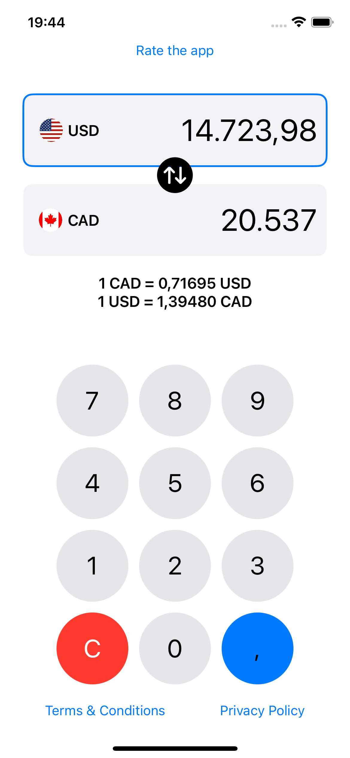 The simplest way to convert USD↔CAD. Get accurate live rates when online, then keep calculating offline with the last saved rate. Perfect for travel, shopping across borders, and budgeting.